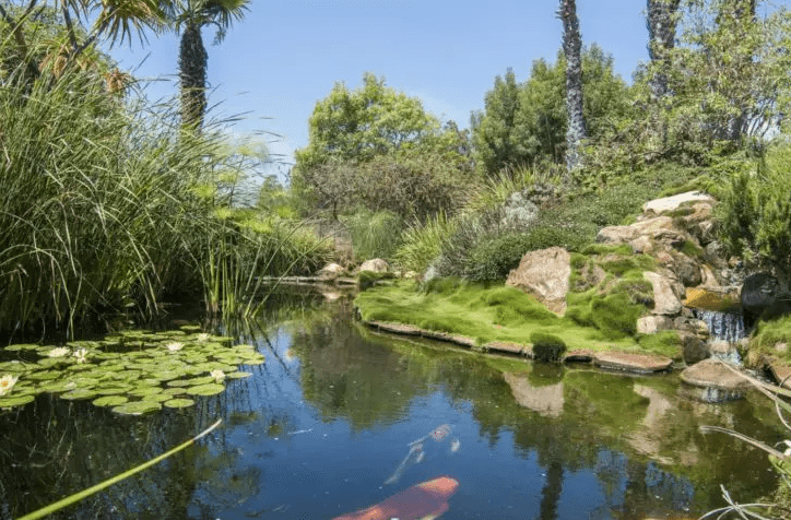 Seamair Farm is an expansive property that spreads over 23 acres. This mid-century gem features five bedrooms and four bathrooms. In addition to this, it boasts a fish pond full of Japanese koi, a grove of avocado trees, and an orchard of fruit trees.