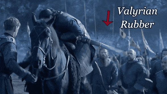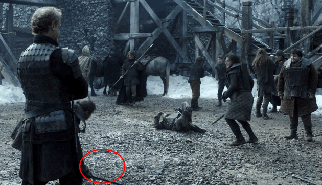 Most GoT fans to agree that the Battle of the Bastards in season six is one of the best fight scenes in the whole series. While most viewers were hypnotized by all the action, a few frowned as they noticed a rather hilarious goof: Jon Snow’s fearsome weapon has an odd bounciness to it. As the man who knows nothing sprang up onto his steed, his weapon flopped around like a fish out of water. One could theorize that Valyrian Steel is more flexible than our Earthy metals, but that’s a bit of a stretch, particularly considering nothing of the sort was ever explained.