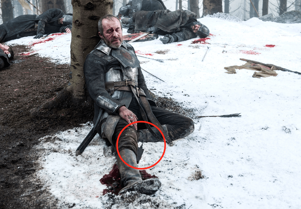 The conclusion of the fifth season of the series saw the character Stannis Baratheon meet his end through Brienne of Tarth. While the graphic scene of him agonising against a tree and losing blood may seem mild compared to others, something doesn’t quite fit: a contemporary charger can be spotted next to his wounded right leg. It raises a question about whether the fantasy realm of Westeros is attempting to conceal its technological progress. If that’s the case, their cover-up efforts seem to be falling short.