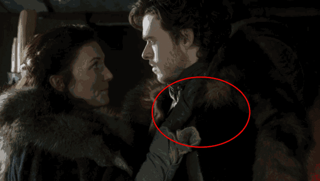 Before Jaime Lannister lost his right hand, many GoT fans were distracted by Catelyn Stark’s magic hand. In this scene from the first season, her hand just seems to vanish between shots. Maybe the show’s world is more magical than we think, but it doesn’t disappear with any of the smoke and sparkles you’d expect from a typical magical spell. It seems more likely that the people on-set that day lapsed in their attention to detail, as shown with all the previous mistakes like this. Either way, it doesn’t really matter because we all know that Catelyn’s vanishing hand is nothing compared to what went down at the infamous red wedding.